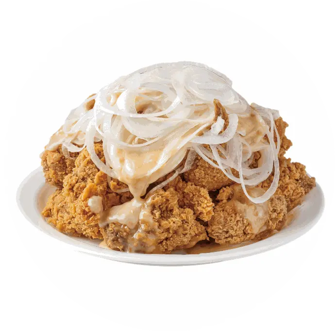 Fresh sliced onions with a refreshing creamy Cloud sauce on top of our original crispy Next Level fried chicken.